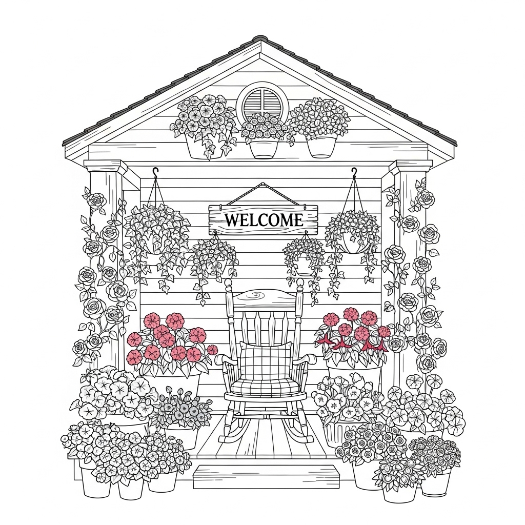 Inside this Creative Charm Coloring Book for Adults, you’ll find a world where cobblestone streets, rustic doorways, flower-covered windows, and cozy village corners come to life. Each page celebrates quiet moments, simple living, and charming environments that feel like a warm hug.