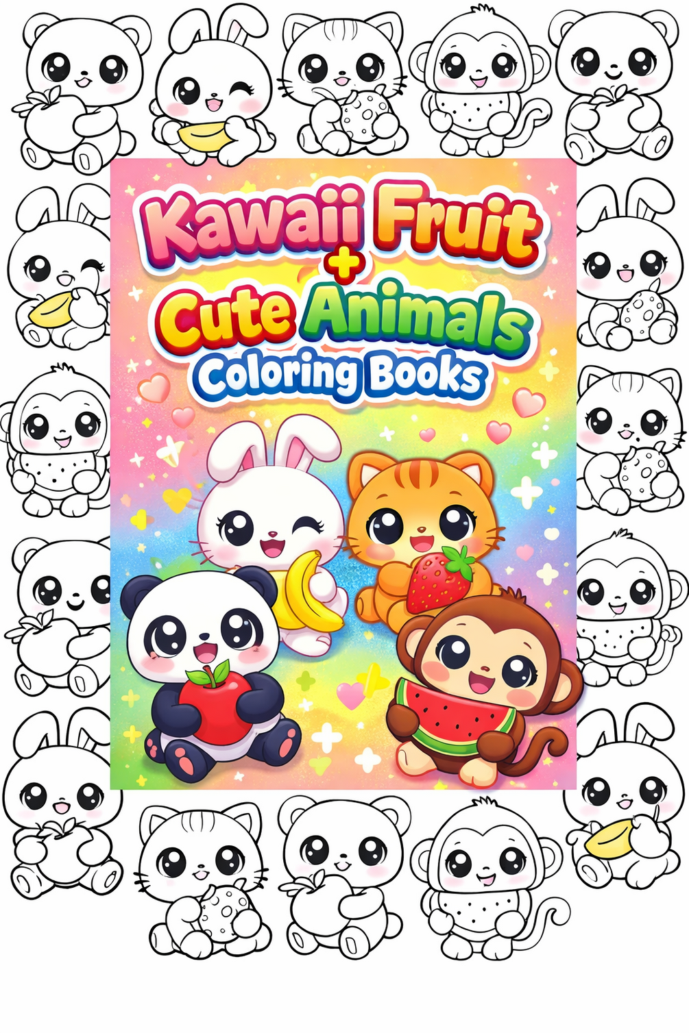 🍓 Kawaii Fruit + Cute Animals Coloring Book for Kids (Printable PDF)
